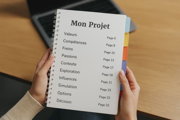 Un parcours clair qui avance pas à pas, avec des exercices ouverts pour explorer envies, freins, valeurs et moteurs, bien au-delà d’une simple discussion.